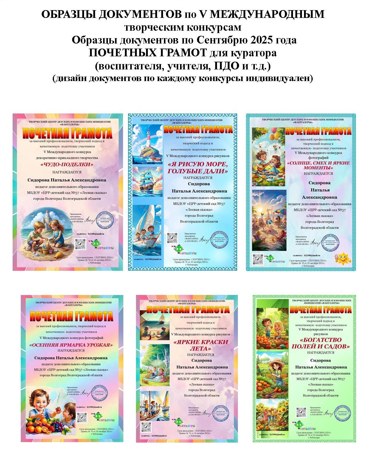 02.10.2025. Завершена рассылка по Сентябрю 2025г. по Международным и Всероссийским конкурсам