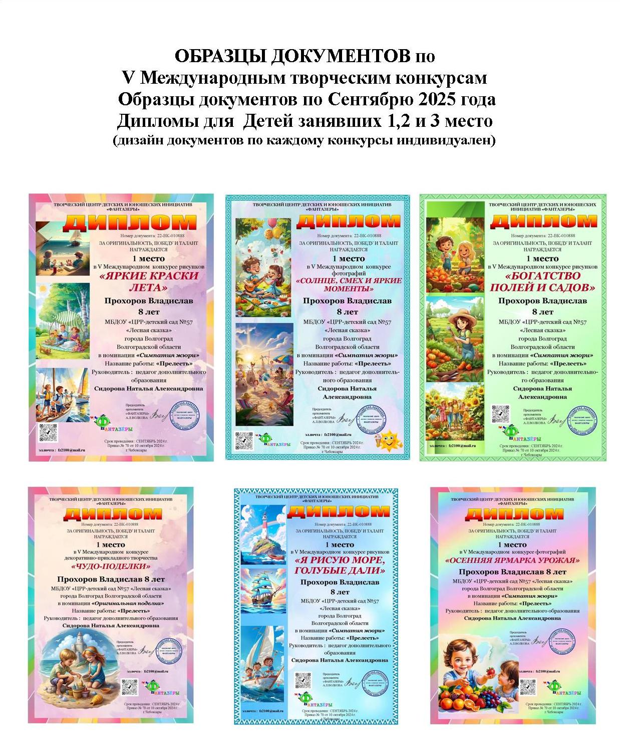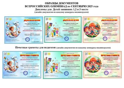 Вы получаете красочный диплом для детей и Почетную грамоту для педагога для пополнения портфолио